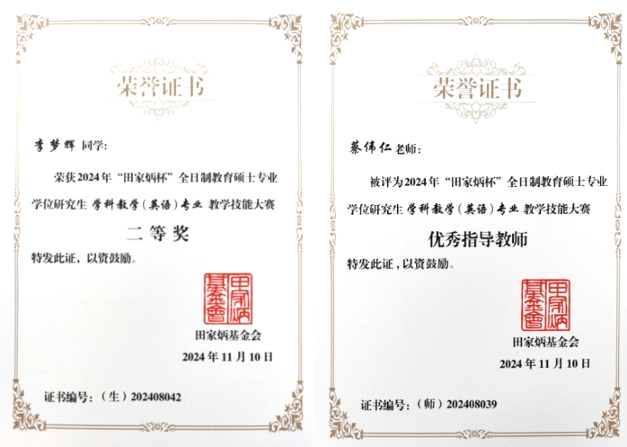The final assessment comprised three components: on-site question formulation, simulated instruction, and live defense, executed through on-site question generation, time-constrained lesson preparation, and practical teaching demonstrations. The one-and-a-half-hour preparation phase assessed the competitors’ fundamental teaching abilities, topic knowledge, psychological attributes, and general time management skills. Menghui Li, a graduate student specializing in subject teaching (English) at our college, ultimately secured the National Second Prize, while Teacher Weiren Cai received the Excellent Instructor Award. Graduate students Ge Guo, Xiaorong Feng, and Mingzhe Yin, specializing in preschool education, attained the National Third Prize.