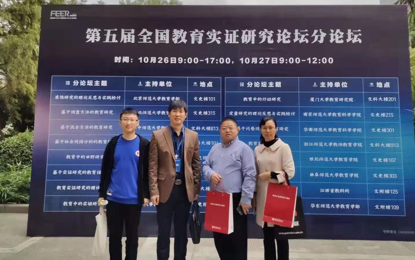 From October 26th to 27th, 2019, the Fifth National Forum on Empirical Research in Education was held in East China Normal University. Professor Huang Jinyan, Professor Chen Quan, Associate Professor Kang Cui, and Xu You (graduate student), participated in the academic seminar. Our graduate student Xu You submitted an academic paper to the conference and made a topic entitled "Eastern Rural Areas" Supply and Enlightenment of Public Resources for Preschool Education ".