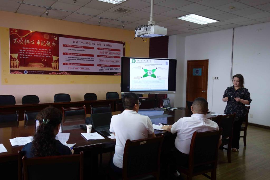 On the afternoon of June 18th, we held a thesis proposal and pre-defense of thesis for foreign postgraduates in the room 1806. Irina Vlasenko (from Russia) did a pre-defense of her thesis, Ghana student Anthony Sylvester Anning, Kenyan student Flavian Adhiambo Odhiambo and Tanzanian student Jenifa Joseph Mapunda gave a graduation thesis opening report. Professor Huang Jinyan, Dr. Chai Nan, and Dr. Wang Baoxi attended as experts in the review group.
