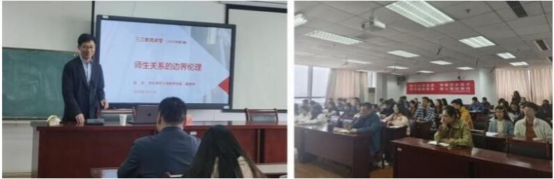 On the afternoon of April 25th, 2023, Professor Liang Cheng from the Department of Education of East China Normal University visited the Sanjiang Education Lecture Hall and gave a lecture titled “Boundary Ethics of Teacher-Student Relations” to the esteemed faculty and student body. Professor Shouwei Lv hosted this session.