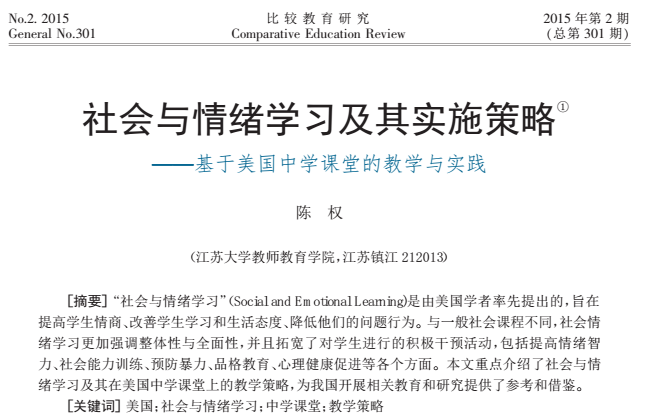 社会与情绪学习及其实施策略——基于美国中学课堂的教学与实践