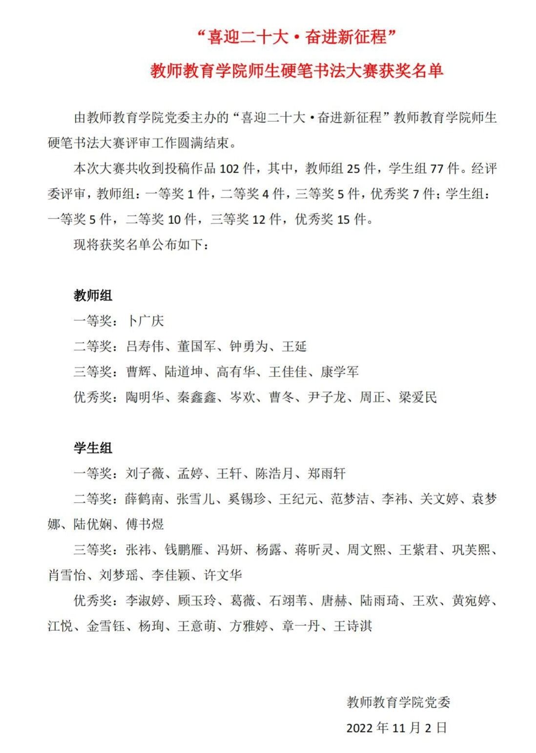 上一条:关于2022年度花都影视 党内评优结果的公示 下一条:关于举办第六届江苏省教育硕士实践创新能力大赛的通知