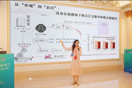 本次论坛采用国际通行的“三分钟论文演讲(3MT)”模式,严格对标国际竞赛规则,要求选手在180秒内以单张PPT为辅助,将高深学术成果转化为通俗表达。宗心雨聚焦教师教育领域核心研究,以“科研翻译”思维搭建清晰逻辑框架,用精练语言阐释研究的社会价值与创新点,让跨学科评委与听众快速读懂研究内涵。