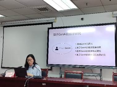 讲座伊始,吴斓博士介绍了生成式人工智能的基本概念及其发展脉络。在此基础上,围绕大模型、大语言模型以及多模态大模型,详细阐释了生成式人工智能的基本原理,拓展了与会师生的学术视野。随后,吴博士重点探讨了生成式人工智能在教学实践中的应用价值,包括教师在课前进行学情分析、教学资料准备,以及课后总结复习、作业设计与批改等方面的辅助作用。最后,吴博士从教学效果、教学模式与教学支持服务三个维度,深入分析了生成式人工智能在教学研究中的应用现状与发展趋势,进一步启发了师生的研究思路。讲座结束后,教师们结合自己的课程教学,围绕人工智能赋能师范教育教研教改开展了激烈的讨论,并与吴斓博士进行了交流。