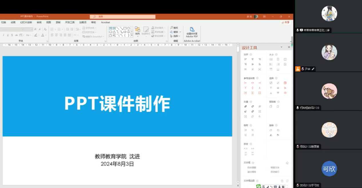 在暑期接下来的时间,师范教育中心和各学院分工合作,为师范生技能训练开展指导。师范教育中心安排7次线上指导,包含:教育知识与能力、综合素质、教师语言、PPT制作等。
